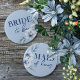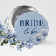 Bride to Be Blue Brautparty Button auf Button. Die Blume sind in einem hellblau-schieferblauen Hintergrund mit schönen, eleganten, staubblauen gehalten. Karo die anderen passenden Knöpfe in der Kollektion für andere wichtige Gäste wie die Trauzeugin, die Mutter des Bräutigams, die Brautjungfrau und mehr!