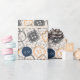 Diese Geschenkpackung weist einen bräunlichen Hintergrund mit verschiedenen Formen und Farben von Tasten/Nähvorstellungen auf. Es wäre großartig, Geschenke für jemanden einzupacken, der gerne als Hobby näht, als Seemann, etc.