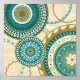 © Veronique Charron / Wilder Apple. Dieses Bild mit kreisförmigen Mustern ist in Blau- und Goldfarben gehalten. Das Bild hat einen bräunlichen, blumengeschmückten gemusterten Hintergrund.