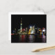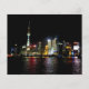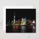 Shanghai bei Nacht oder im Abend. Das Foto wurde im "Bund" auf einem warmen Abend aufgenommen. Es zeigt den Oriental Pearl Tower und die Wolkenkratzer in der Nachbarschaft. Shanghai ist Chinas größte Stadt und eine der größten der Welt. Die Stadt hat in den letzten zwei Jahrzehnten durch den Wunsch der China, sie zu einem internationalen Finanz- und Kulturzentrum zu machen, einen Boom erlebt. Die Stadt besticht durch eine fantastische Mischung aus Geschichte und Moderne. Die Modernität der Stadt wird am deutlichsten, wenn die Nacht am Huangpu fällt, wo die Besucher eine atemberaubende Lichtschau sehen können und einen herrlichen Blick auf die Wolkenkratzer der Stadt genießen können, wie im Foto zu sehen.