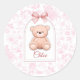 Scharlachrot | Benutzerdefiniertes rosa Teddy-Bär- Runder Aufkleber