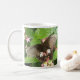 Diese atemberaubende Tasse zeigt ein Foto eines wunderschönen tropischen Schmetterlings, umgeben von hübsch rosa tropischen Blume und grünen Blätter. Diese Art wird als Scarlet Frack Butterfly (Papilio romanzovia) bezeichnet. Es hat schöne schwarze und scharlachrote Markierungen auf den Flügeln. Es kommt von den Philippinen. Das Foto wurde mit Makrofotografie für ein erstaunlich detailliertes Ergebnis aufgenommen.