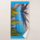 Schatten einer Palme am Strand von Takapoto, einer Insel im Tuamotu-Atoll in Französisch-Polynesien.