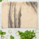 Das Originalfoto von MaeFlowers auf diesem Küchentuch, aufgenommen an einem Strand in Florida, zeigt die Schatten der Palmen auf dem Sand. Das abstrakte Foto mit seinen warmen grauen Schatten am cremig-beigen Strand erinnert an eine Holzkohle-Skizze.