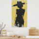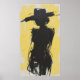 Dieses kühne abstrakte Poster zeigt die Silhouette einer geheimnisvollen Figur in einem Set mit schwarzen Pinselstrichen vor einem lebhaften gelben Hintergrund. Die ausdrucksstarken Striche deuten sowohl auf Stärke als auch auf Verletzlichkeit hin, während der breit geglänzte Hut ein Gefühl von Intrige und Eleganz verleiht. Dieses Kunstwerk mit seinem rohen, modernen Stil und seiner kontrastreichen Palette ist ein kraftvolles Statement-Stück - ideal für zeitgenössische Interieurs, die Kreativität, Individualität und dramatischen Flair einschließen.