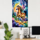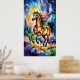 Dieses Stück ist ein atemberaubendes und lebendiges Aquarellbild eines galoppierenden Pferdes. Das Kunstwerk wird durch seine explosive Verwendung von Farbe und eine traumhafte Qualität definiert. Das Pferd mit seiner prächtigen fließenden Mähne und seinem Schwanz ist in warmen Tönen aus Gold, Bronze und Maron bemalt. Der Hintergrund ist ein fantastischer Mix aus coolen Farbtönen mit wirbelnden Wolken aus tiefer Blues, Püree und Grüntöne. Der Künstler hat diese Farben nahtlos miteinander vermischt und so einen Effekt erzeugt, der einen Nachthimmel oder einen Polarlichter suggeriert. Hinzu kommt die zauberhafte Atmosphäre der zauberhaften Sterne, die über die Leinwand verstreut sind. Die Dynamik dieses Gemäldes und seine reiche Palette würden in jedem Raum eine mutige und fantasievolle Äußerung abgeben, die perfekt für jemanden ist, der Fantasie, Pferde oder lebendige Kunst Liebe hat.