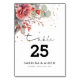 Diese wunderschöne Tischnummer mit floralen Aquarellen in sanftem Rosa, Pfirsich, staubblauem Blau und Bordeaux. Die zarte Kalligraphie-Schrift fügt eine Touch von Eleganz hinzu, während die Goldakzente einen Hauch von Glamour verleihen. Die Tischnummer ist ideal für eine Hochzeit mit einem romantischen und femininen Thema.