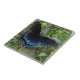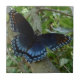Im Schatten des Lilatstrauchs befinden sich die schwarz-blauen Flügel eines ruhenden Schmetterlings.
