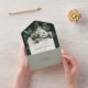 Diese bezaubernde Einladung All in One zur Hochzeit erschließt das Wesen der Natur mit seinem atemberaubenden Blumendesign in Grüntönen auf einem ruhigen, dunkelgrünen Hintergrund. Diese Einladungs-Suite ist die ideale Wahl für Paare, die eine elegante und romantische Touch für ihren besonderen Tag suchen. Die All-in-One Hochzeitseinladungen sind schön und praktisch, indem sie die Hochzeitseinladung mit einer leicht zu entfernenden perforierten UAWG-Postkarte kombinieren. Sie sind auch schnell und einfach für den Versand vorbereitet. Einfach auf die Einladung richten, die Rückenklappe und das Siegel mit den beiliegenden Klarsichtstickern falten. Sobald Ihre Gäste die voradressierte Einladung erhalten, reißen sie einfach die perforierte RSVP-Karte ab und lassen sie in der E-Mail ablegen.