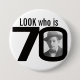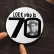 Feiern Sie einen 70. Geburtstag mit diesem Spaßblick, der das Abzeichen/der Knopf mit 70 Fotos ist. Personifizieren Sie dieses Alters-Abzeichen mit einer Fotografie des Geburtstagsjungen oder -mädchens. Große Idee für das Hinzufügen etwas Spaßes einem Geburtstags-Party. Verwendet werden, um Baby-Fotos oder andere Spaß- oder peinlicheFotos über Ihren Geburtstagsmädchen oder -jungen zu zeigen können siebzig Jahre. Exklusiver Entwurf durch Sarah Trett.
