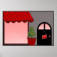 Ein Schaufenster und eine Tür mit dem offenen Schild. Dieses Design sieht wirklich effektiv aus auf diesem Poster