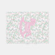 Hübsches rosa Schaukelpferd mit verschiedenen Rosatönen und Lila neben lustigen Blumen