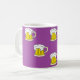 Eine schäumende Biertasse mit sprudelnden Bläschen steht vor einer faszinierenden lila Kulisse, die in einer warmen und luxuriösen Atmosphäre ein Gefühl von Geselligkeit und Entspannung weckt.