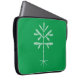 Neoprenschaum Laptop Ärmel in Simon's Rock grün mit einer weißen Zickzack Sapling auf jeder Seite. In 10", 13" und 15" Größen für **THIN** Notebooks.