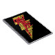 Karo Shazams Fähigkeiten in gelbem Text, mit Shazams Silhouette in rot über der Vorderseite, geformt in einen Blitz. Die Weisheit des Solomons, Die Stärke des Herkules, Ausdauer des Atlas, Power des Zeus, Courage of Achilles, Quecksilbergeschwindigkeit.
