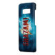 Karo dieses theatralischen Logos für SHAZAM!, mit roter Schrift über einem Blitz.