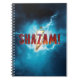 Karo dieses theatralischen Logos für SHAZAM!, mit roter Schrift über einem Blitz.