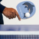 Schein-dunkelblauer weißer Delphin-springende Tischtennis Schläger