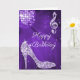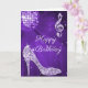 Geburtstags-Grußkarte der Frauen elegante mit Glitz und Glamour. Schönes Lila der Frau, Flieder/Lavendel und weiße Grußkarten mit einer funky retro Disco spiegeln Ball, bezaubernde Druckbild-Kristall, Glitter, Sequins, bling Heelsstilettschuhe des Juwelscheins hohe und glittery musikalische Anmerkungen/Musiknoten mit Glitzern auf vibrierende lila Lichter und Glitzernhintergrund wider. Chic, noble, niedliche, girly, moderne Karten für Frauen und Mädchens in den trendy, modernen Farben. Diese groovy, extravaganten, stilvollen, hoch entwickelten, hübschen, girly Karten. MERKEN SIE BITTE: Alle Produkte auf Zazzle haben Ebenedruckbilder. Wenn Sie irgendeine Unterstützung benötigen, die Ihr Produkt in Verbindung treten besonders anfertigt mit mir bitte, durch meinen Speicher und ich bin glücklich zu helfen.