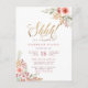Mit diesem fantastischen Design bereiten Sie sich auf eine überraschende Geburtstagsparty vor. Diese Einladung enthält Aquarellrosse in den oberen, rechten und unteren links Ecken, handgeschriebenes, goldenes Glitzer-Schriftzeichen für das "Shhh!" mit einem rosa Polka-Punkt und Blumenmuster auf der Rückseite. Fügen Sie Ihre eigenen Daten hinzu, indem Sie auf den Knopf "Personalisieren Sie diese Vorlage" klicken und in die Textfelder eingeben und merken Sie sich, behalt ruhig!