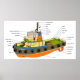 Schematische Darstellung eines Schleppbootes Poster