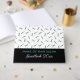 Gästebuch für einen Friseur oder eine Friseurstylistin mit einem Muster von Kämmen und Scheren in schwarz und türkis, vor weißem Hintergrund. Fügen Sie den Namen Ihres Salons und das Jahr, um sowohl Abdeckung und Wirbelsäule.