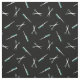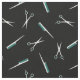 Schwarzer Stoff mit einem modernen Muster der Schere und Kämme in weiß und aquamarin.