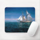 Malerei eines Schererschiffs, Segel oben, allein auf dem Ozean