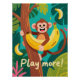 Ein fröhlicher Cartoon-Affe umarmt eine Banane, während er einen Baum erklimmt, umgeben von tropischen Blättern und dem aufmunternden Satz „Spiel mehr!“ für eine lebendige Dekoration im Kinderzimmer und Klassenzimmer in warmen, freundlichen Farben und illustrativem Stil, der positive Energie fördert. Eine einzigartige, beschreibende Formulierung und fokussierte Schlüsselwörter stimmen mit den Zazzle-Metadaten-Richtlinien für eine bessere Entdeckung überein.