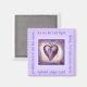 Ein quadratischer Magnet mit einem Bild eines lila Herzens, das zwei weiße Callalilien umfasst, und einer Botschaft, die uns daran erinnert, unser Licht lassen. Siehe die gesamte Erleuchtung Magnet-Auflistung in den SONDERTOUCHS | Abschnitt Gastgeschenke.