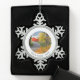 Scheune im Fall Schneeflocken Zinn-Ornament