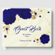 schick-königsblaue Blätter mit Blumengold Gästebuch
