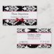 Elegante Schwarzweiss-Damast-Visitenkarte, wenn ein roter Satin Bogen und rote Grenze schaut, betont die Verzierung der Front. Fertigen Sie diese atemberaubende Geschäftskarte für selbst oder Firma besonders an, indem Sie den Text, Text-Schriftartart, Farbe, sogar ändern, fügen Sie hinzu und löschen Sie Felder zu Ihrem Bedarf.