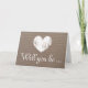 Leinwand sind Sie meine durch die Braut auszusenden Brautjungfernantragkarten. Niedlicher rustikaler Herzentwurf für Land Chichochzeit. Schöne Leinwandbeschaffenheits-Grußkarten mit wethered Liebesymbol. Stehen Sie oben/vertikale Position. Sehen Sie unser Geschäft für elegantere Hochzeits-Party- und -Brautpartyentwürfe an. Ändern Sie Quantität, um den billigsten Preis pro Grußkarte zu erhalten. Stilvolle Typografie.