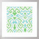 Dieses trendige, moderne, schicke, zeitgenössische, bunte ikat-Muster-Stammesterkunst-Kunstwerk in Blau und Grün ist ein hervorragendes Stück für Ihr Wohnzimmer, Schlafzimmer oder Gästezimmer. Die exotischen, stilvollen, lebendigen Farben und das Ambiente des Kat-Drucks mit einer reichen Textur werden jedem Raum einen Farbspass verleihen. Klicken Sie unter Produkt-Foto auf "Anpassen!", um die Größe des weißen Rahmens zu personalisieren oder sogar zu entfernen!