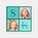 Schicke 2-Foto-Quadrat-Geburtstagsfeier Serviette für den Geburtstag eines trendigen Mädchens. Feiern Sie den Geburtstag Ihres Kindes mit zwei wunderschönen Fotografien von ihnen auf diesem Dekor mit eigenen Fotos mit türkisfarbenen Quadraten. Fügen Sie ihren Namen und ihr Alter unter Alles Gute zum Geburtstag hinzu.