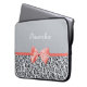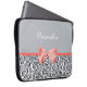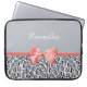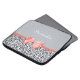 Ein trendy Tierdruck 15 Zoll Laptop-Hülse mit einem girly grauen Jaguarmuster verschönert mit einem niedlichen korallenroten Band gebunden in einen Bogen. Personifizieren Sie diesen Designerkasten der Frauen, indem Sie Ihren Namen addieren. Ebenedruckbild, nicht tatsächliches Band.