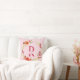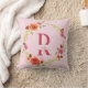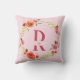 Schicker rosa, rotes und orange Aquarell-BlumenKranz-Entwurf für Ihr Wurfskissen mit kundenspezifischer Initiale und Text.