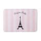Diese elegante Badmatte kennzeichnet die weichen, rosa Streifen und ein schwarzes Bild des Eiffelturms. Der Text liest "Bonjour Schönheit" oder "hallo, schön" auf französisch, aber Sie können dieses unter Verwendung der Schablone leicht ändern.