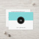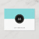 Dieses kennzeichnen Chic, moderne Geschenkgutscheine eine Türkisgrenze, mit Ihrem Monogramm in einem zentralen schwarzen Kreis und eine leere Geschenkgutscheininformationsform auf der Rückseite.