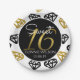 Feiern Sie Ihr fabulosity mit diesem niedlichen, süßen u. sassy 16. Geburtstags-Party-Papier-Teller, das einen Hand-gezeichneten wunderlichen Diamanthintergrund mit einem schwarzen runden Umbauentwurf in der Mitte kennzeichnet, um Ihren kundenspezifischen Text einzuschließen. "16" in der Steigungsgoldbeschaffenheit. Modern mit einem retro Flair, wirklich einzigartig!