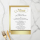 Elegante Hochzeits-Empfangs-Tabellenmenüs erfolgt im Weiß, mit einem Band des Goldes und des Schwarzen, auf der unteren vorderen und goldtone Bedeckung die Rückseite des Menüs. Menü im goldtone extravaganten grafischen Skripttext, verziert die Spitze des Menüs. Die ganze Erholung des schwarzen Textes ist bereit, für Ihren Hochzeits-Empfang zu personifizieren. Zusammenpassende Hochzeitsprodukte verfügbar.