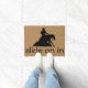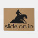 Diese kluge Fußmatte gehört auf dem lenkenden Pferdebauernhof sicher. Es kennzeichnet ein Klippkunst-Silhouettebild eines Cowboys, der ein lenkendes Pferd reitet, das um einen gleitenden Halt geht. Die Wörter auf der gelesenen Matte "schieben an in".