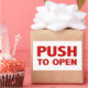 Schieben Sie die Tür auf Zeichen öffnen. Rechteckiger Aufkleber