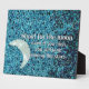 Blaue und weiße Marmormosaike des Mondes und Sterne mit dem Zitat "Shoot for the Moon, auch wenn Sie vermissen, landen Sie unter den Sternen."