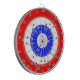 Personifizieren Sie leicht diesen coolen Spaßroten weißen und blauen kundengerechten Dartboard, der wie ein traditionelles Schießenziel mit lustigen FakeEinschusslöchern mit Ihrem Namen oder Text gemacht wird.