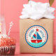 Nautische Themenaufkleber mit Segelboot und Lebensretter in Türkis, Rot, Marine, Blau und Sahne.