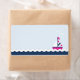Segelboot auf See mit Möwen, die nautische Themenmarke fliegen.