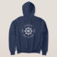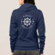 Ein Schiff Wheel Helm & Stars mit Personalisiertem Kapitän oder anderem Titel und Ihrem Bootsnamen oder anderen benutzerdefinierten Text in White auf einem Navy Blue Zip-up Hoodie. Ein großartiges Geschenk- und Gesprächsstück für jeden Anlass.