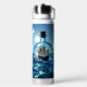 Ein Schiff in einer Flasche, das auf dem Meer schwebt. Eine atemberaubende Illustration für diejenigen, die eine Wasserflasche zum Thema Wassersport Liebe.